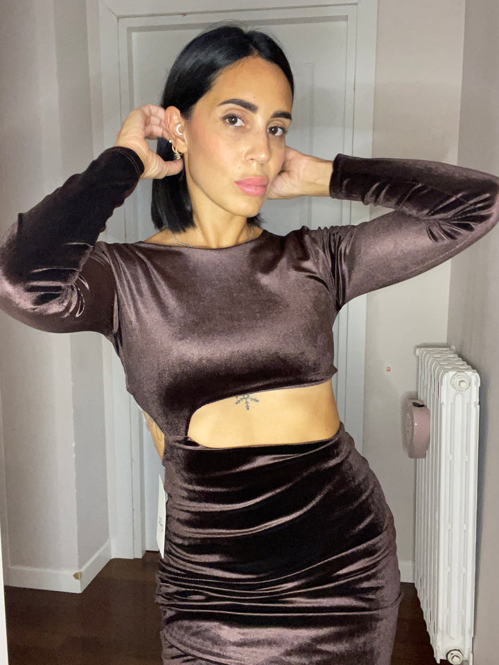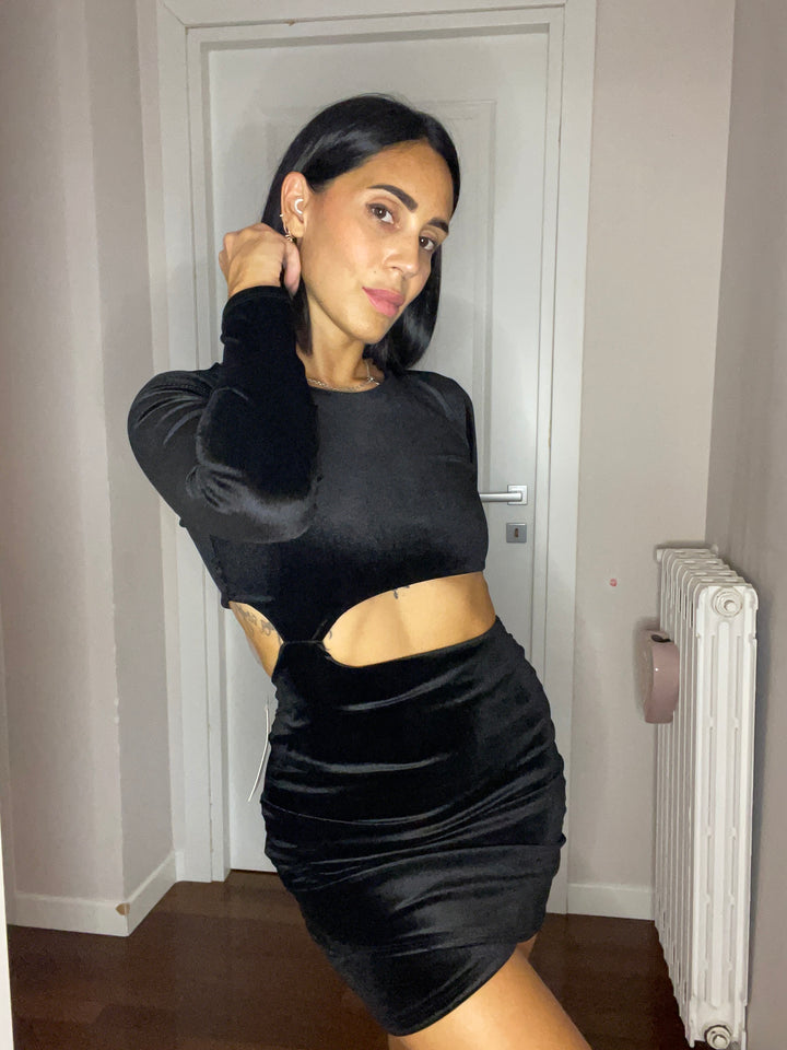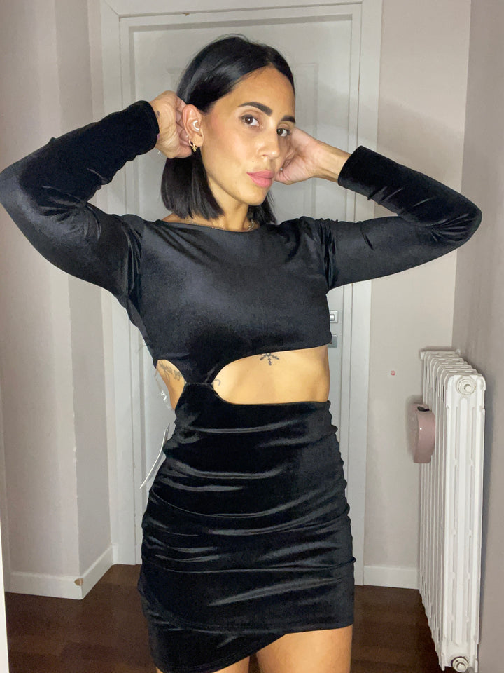Drappeggio della gonna regolabile, veste fino ad una taglia 42.