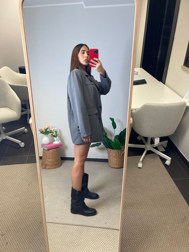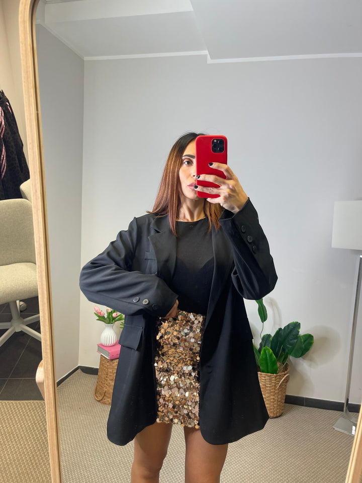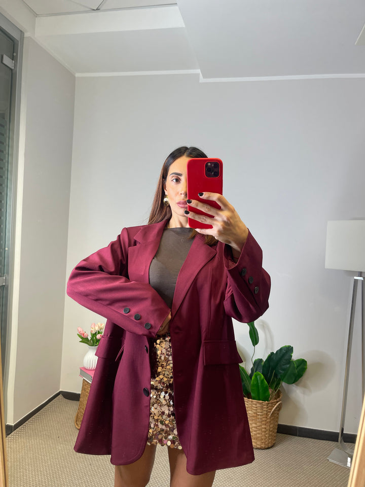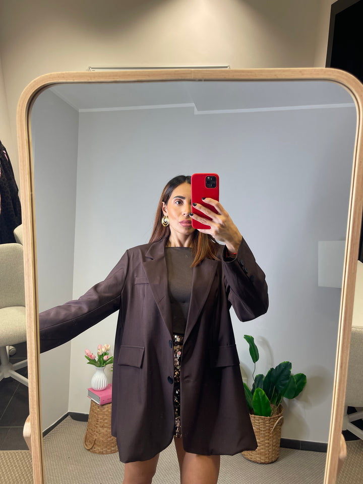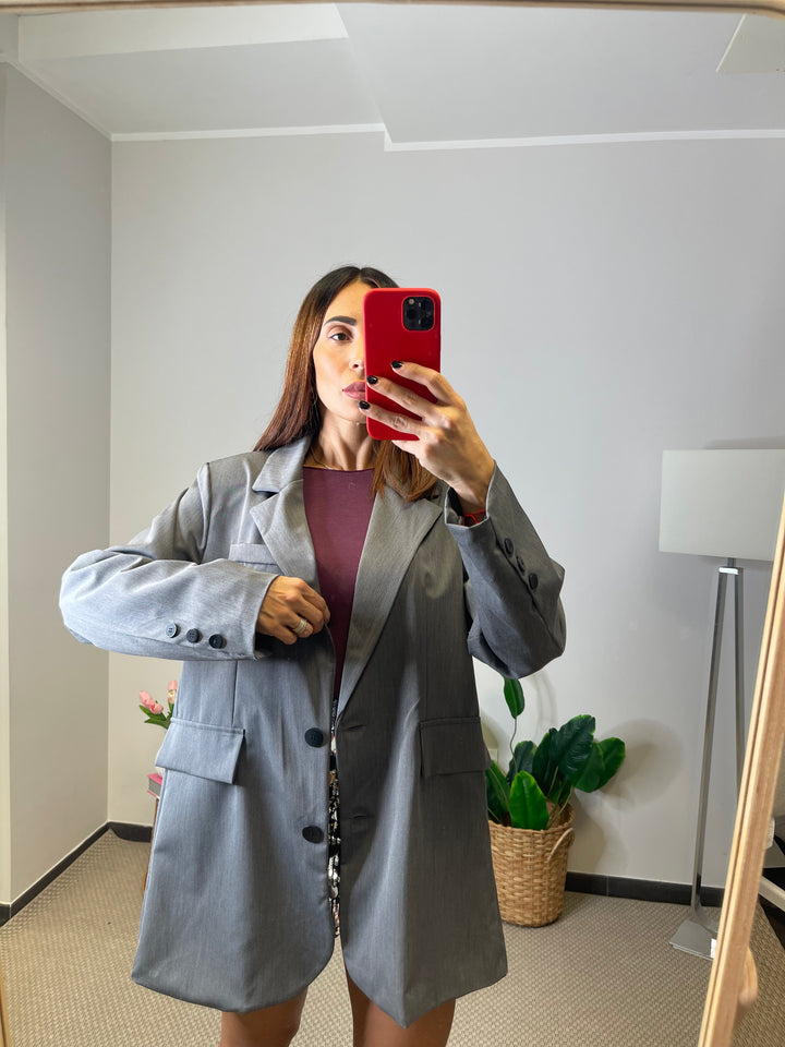 Blazer taglio oversize foderato con spalline imbottite, doppio bottone sul davanti. Taglia unica.