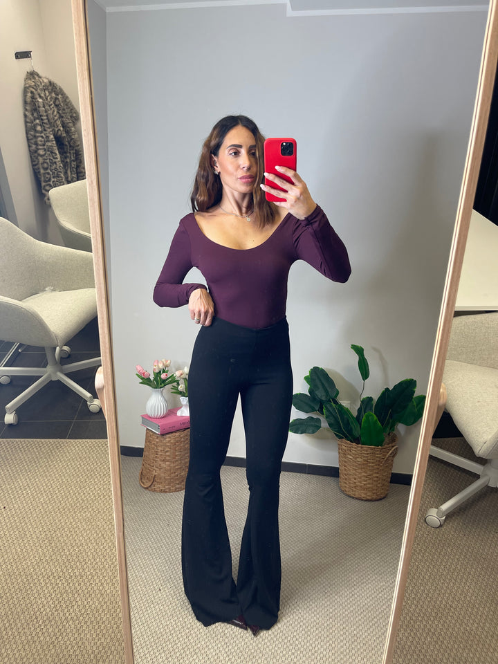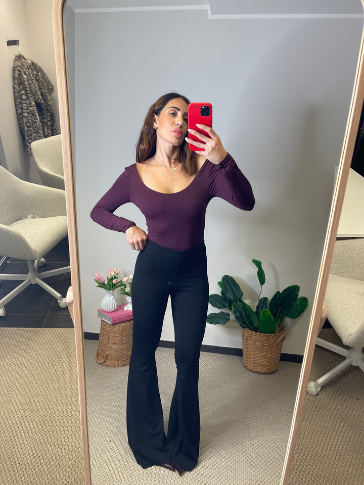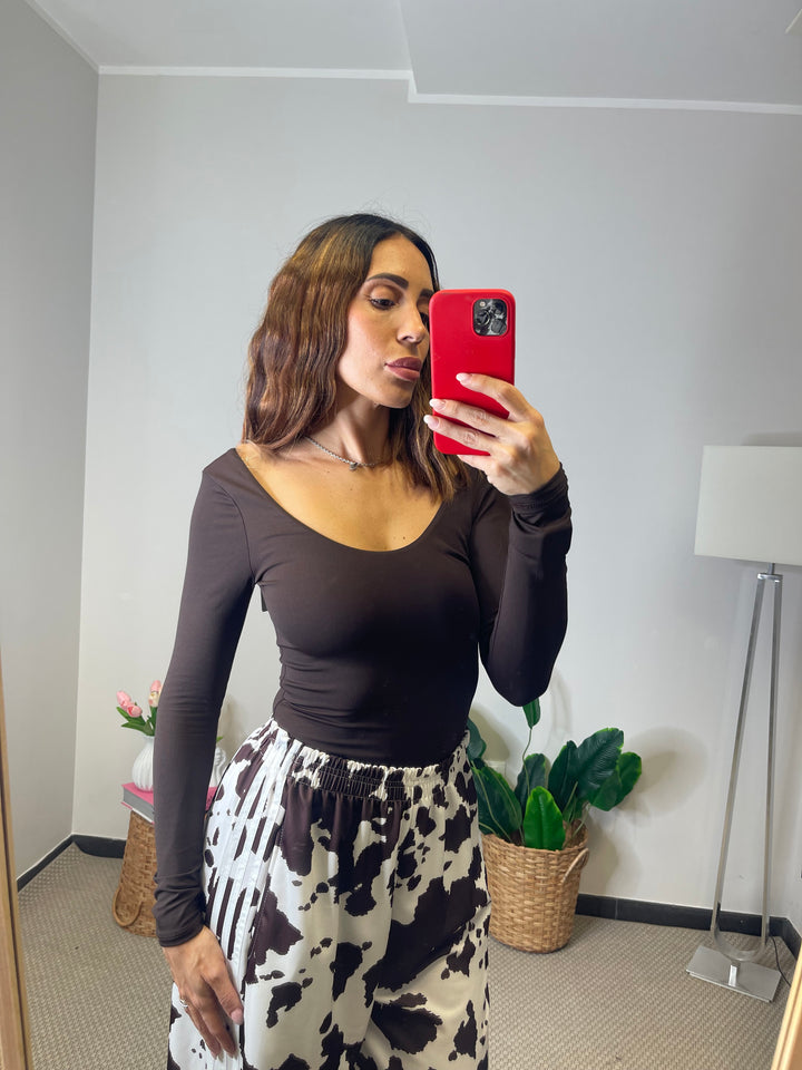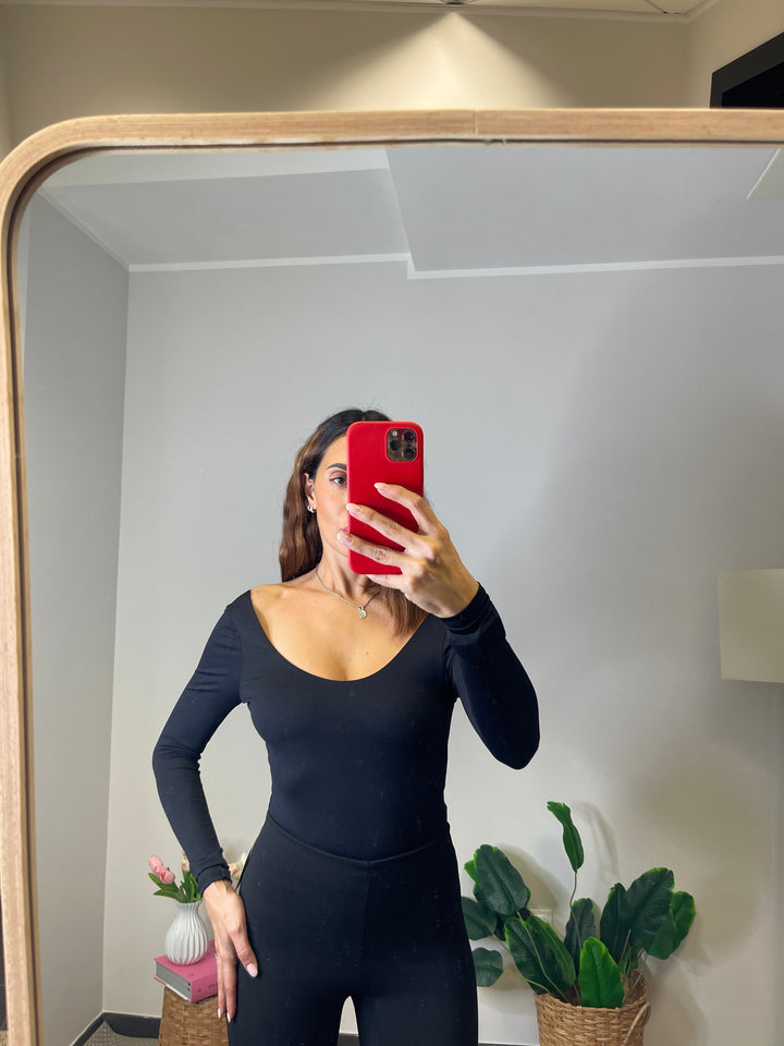 Body in lycra scollo tondo sia sul davanti che sul retro elasticizzato, veste fino ad una taglia 42.