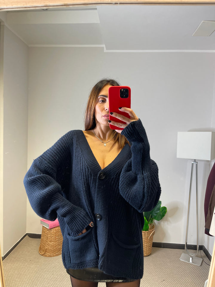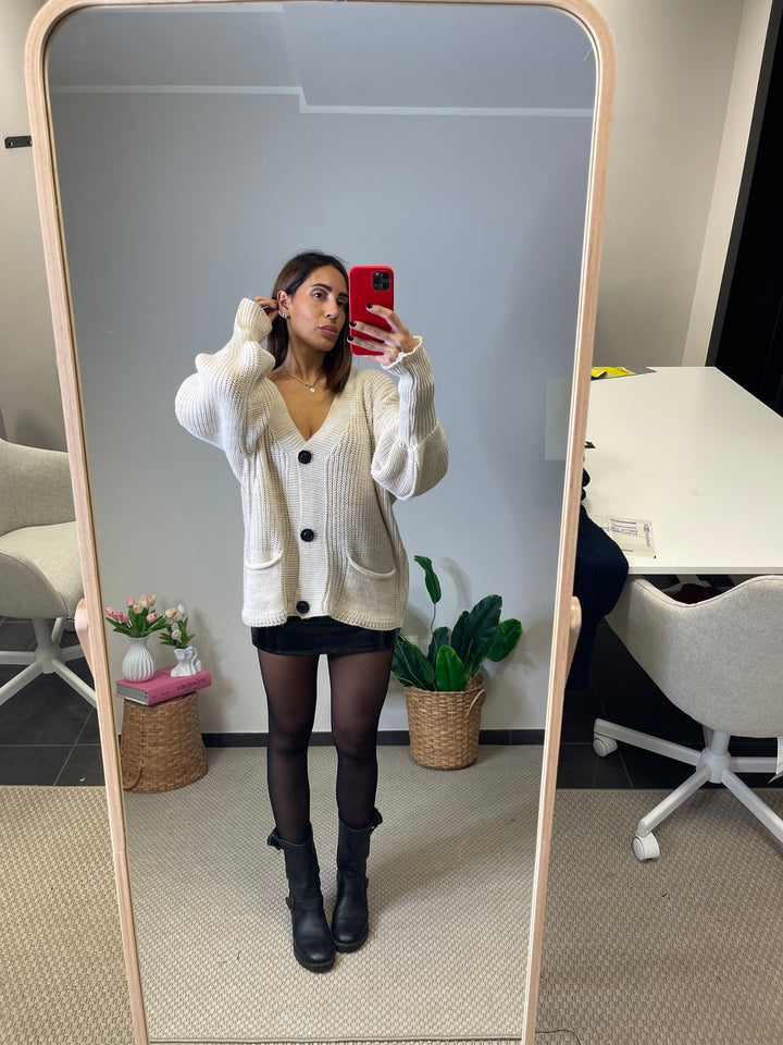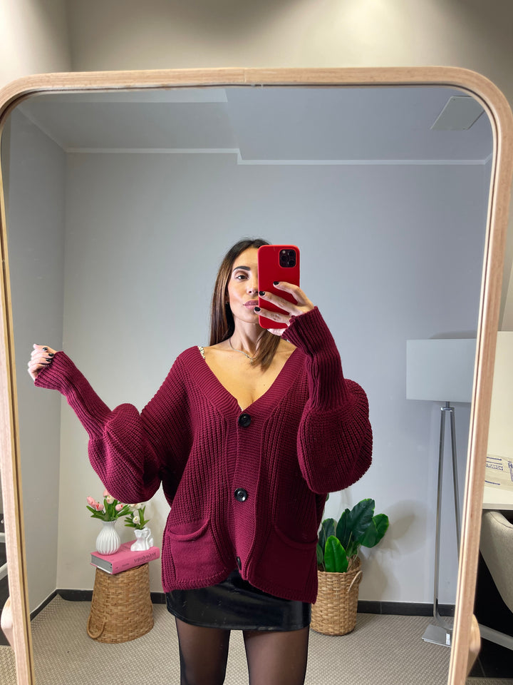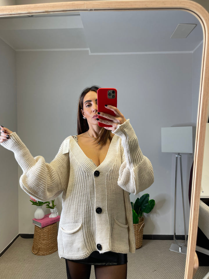 Cardigan con bottoncini apribili e taschine sul davanti.