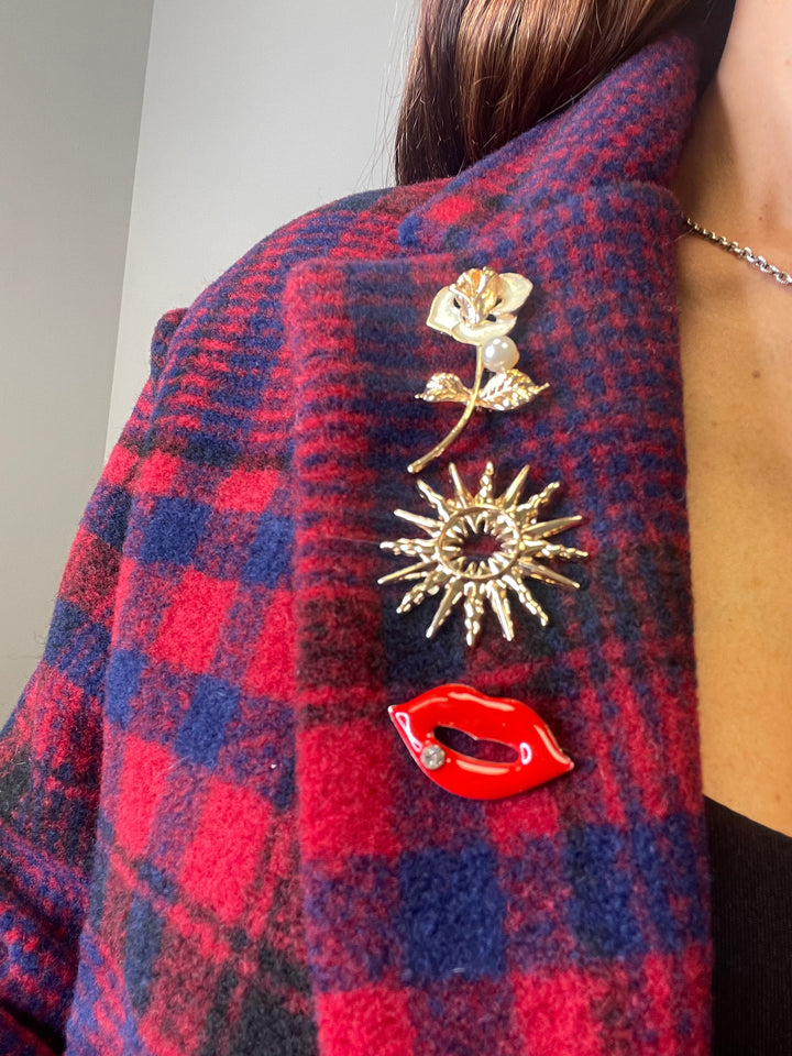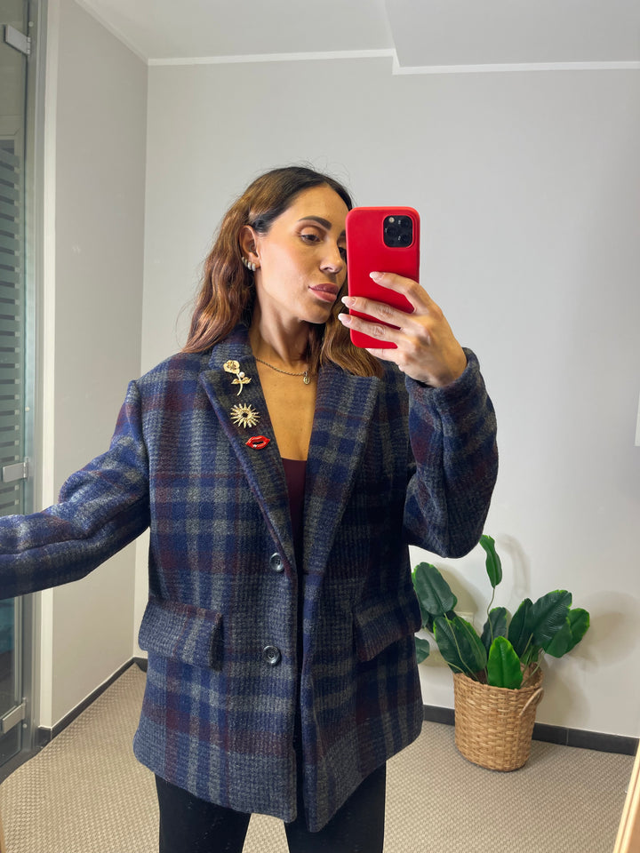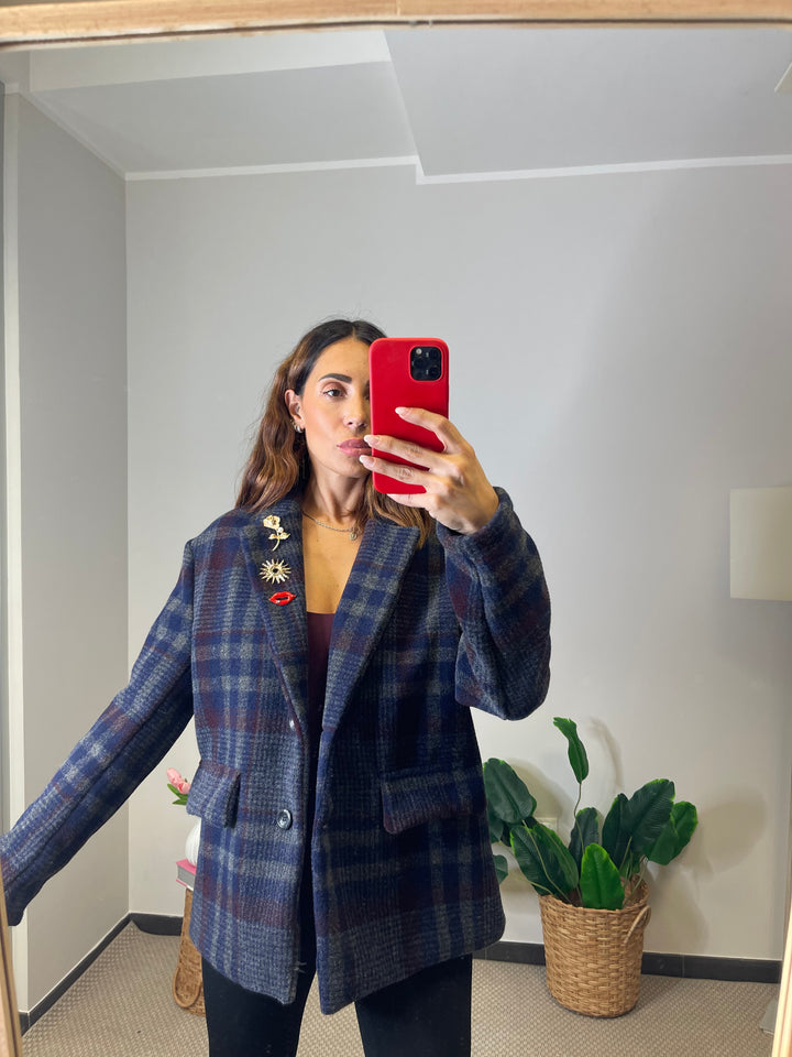 Cappottino in mista lana con spalline imbottite, doppio bottone sul davanti e spille rimovibili incluse. Taglia unica.