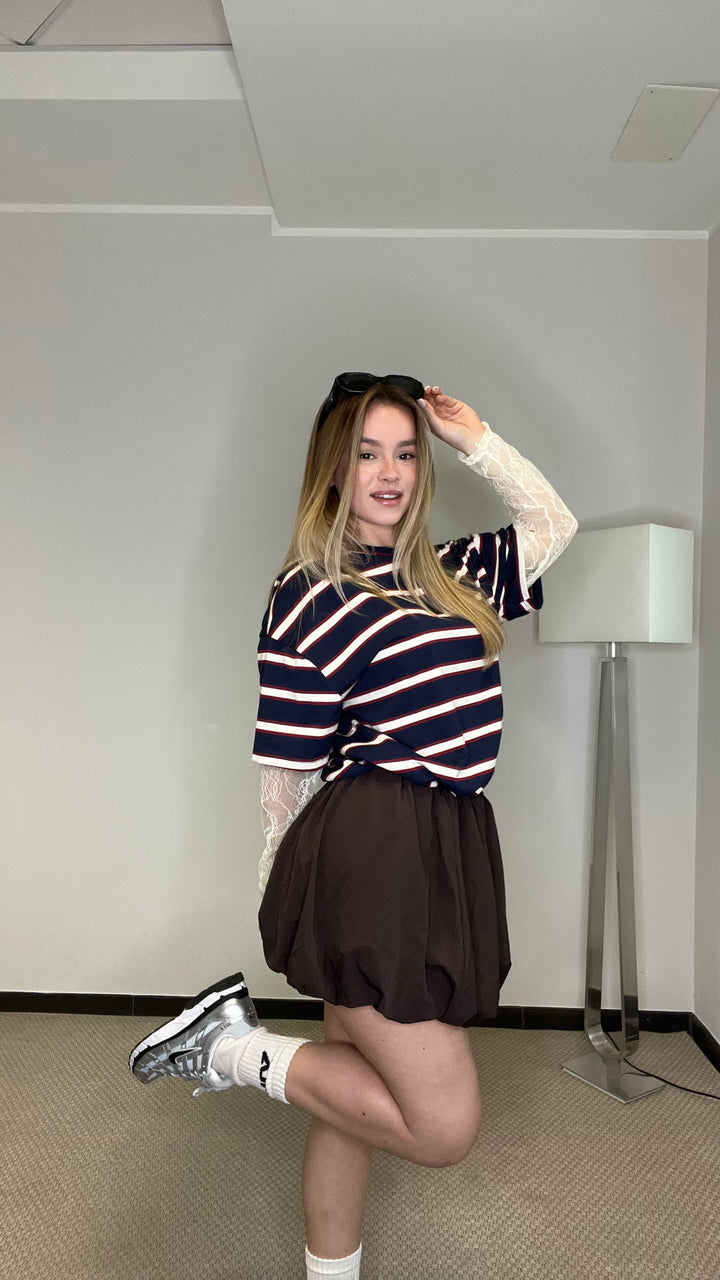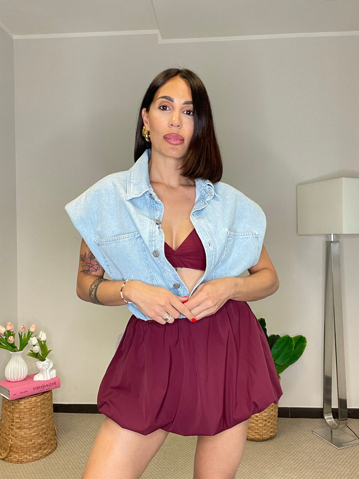 Gonna palloncino in tessuto tecnico con elastico in vita.