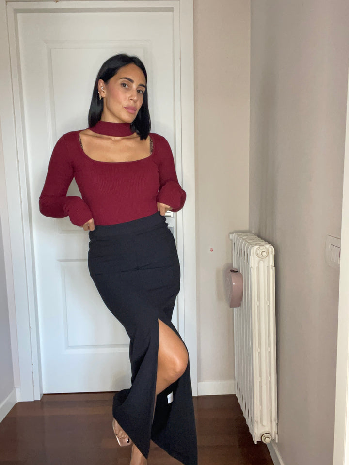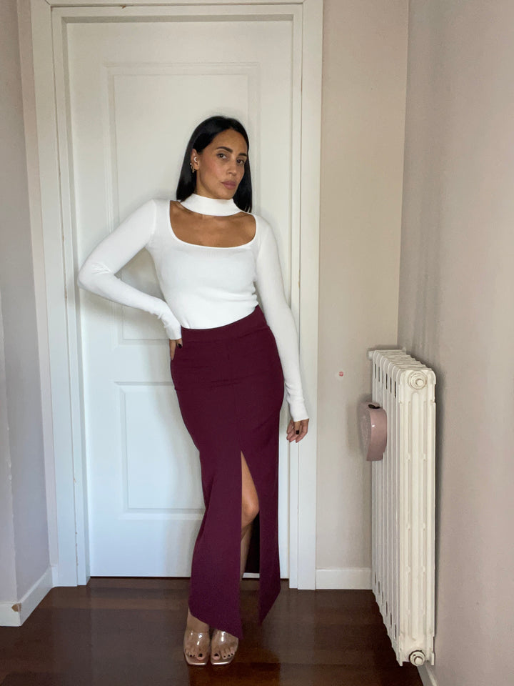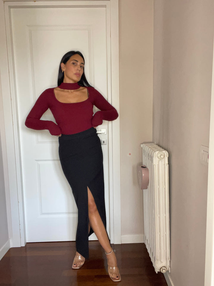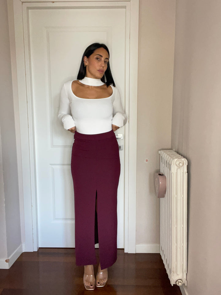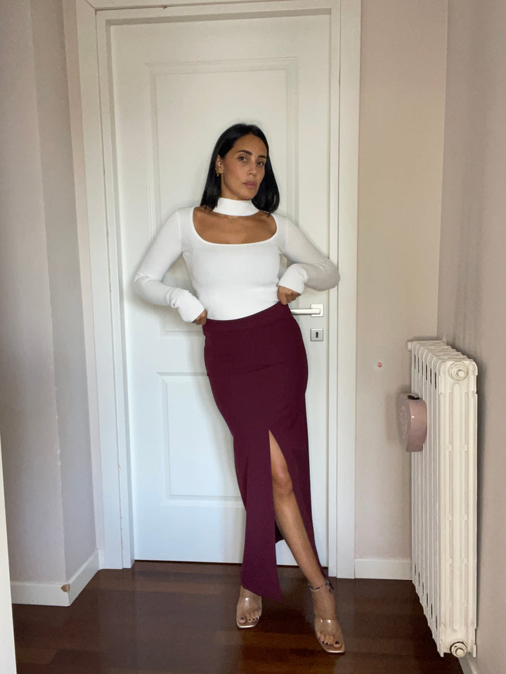 Gonna Tubino Lumina in tessuto con zip sul retro e spacco sul davanti.