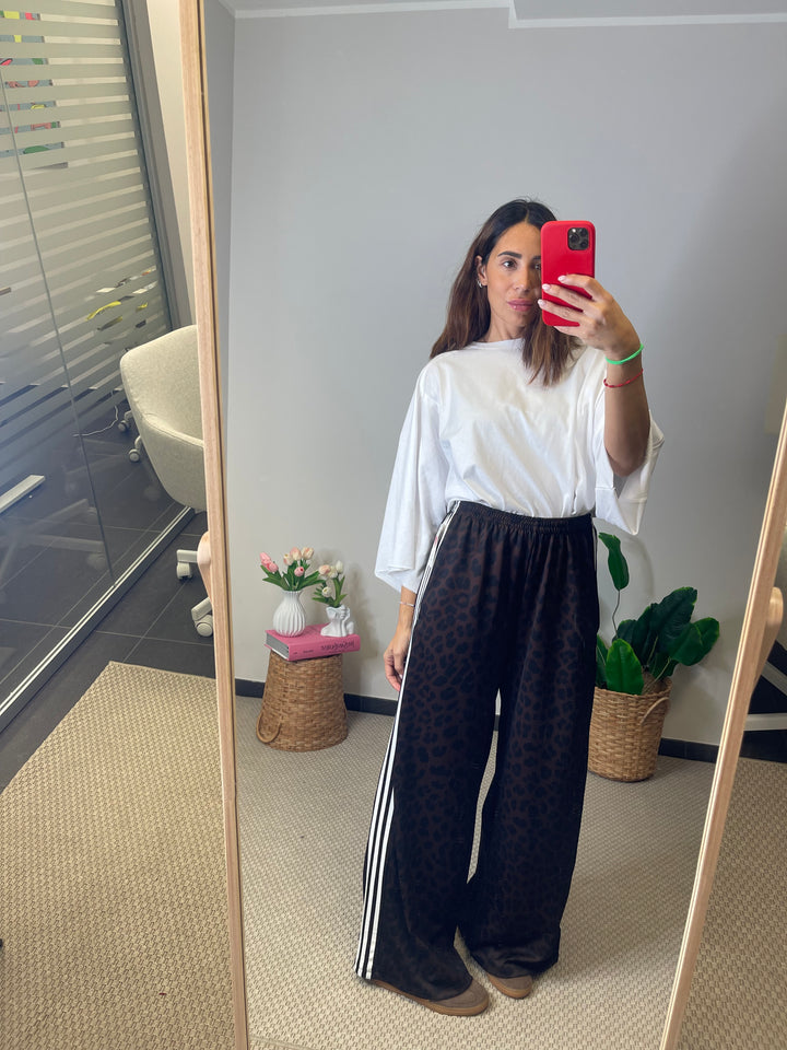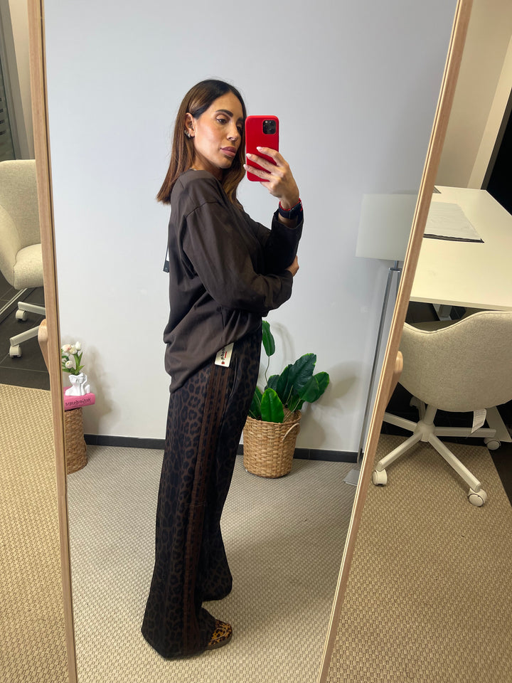 Panta tuta in super tendenza animalier con elastico in vita e tasche laterali.