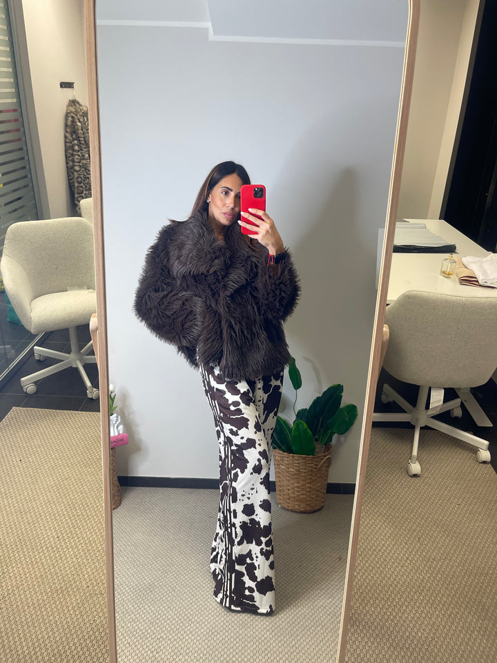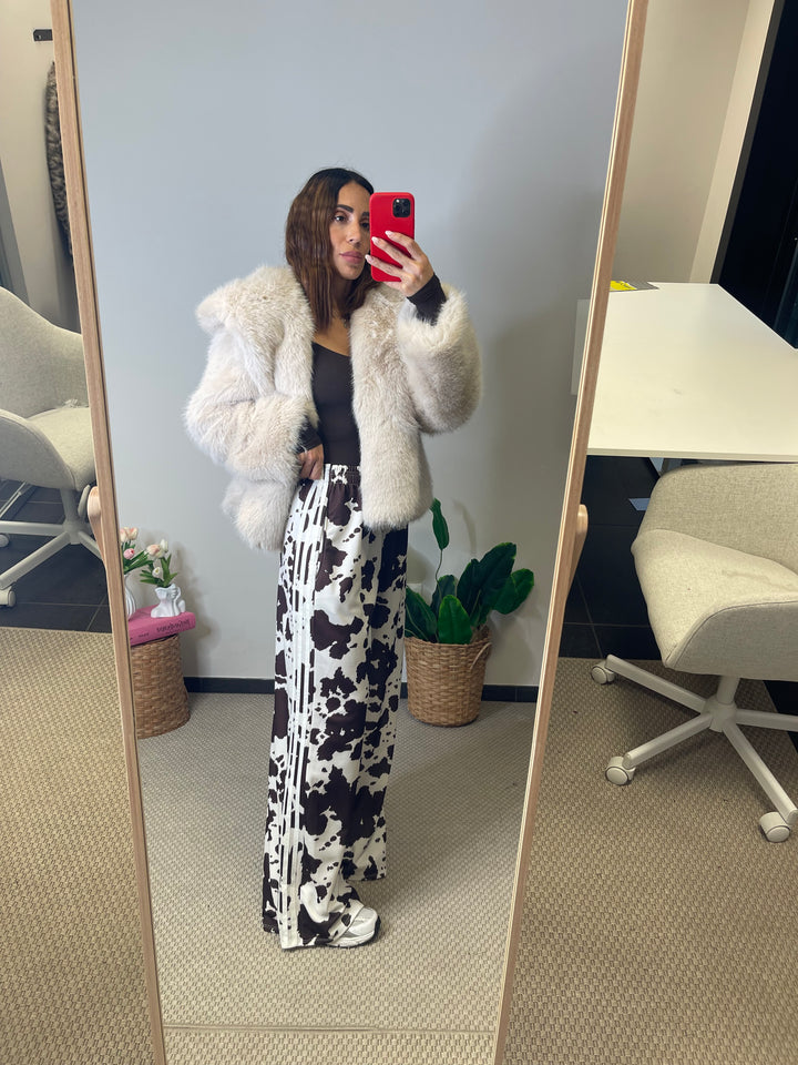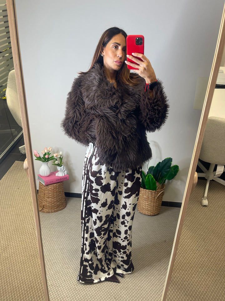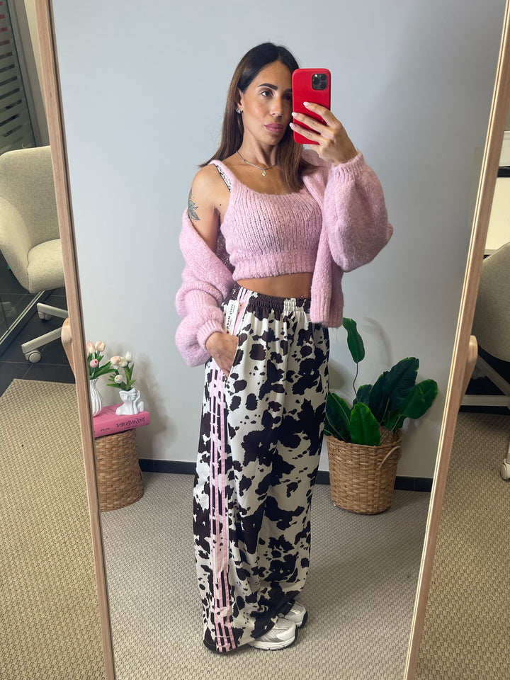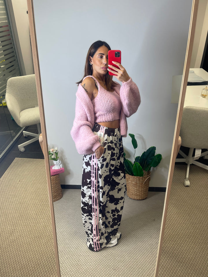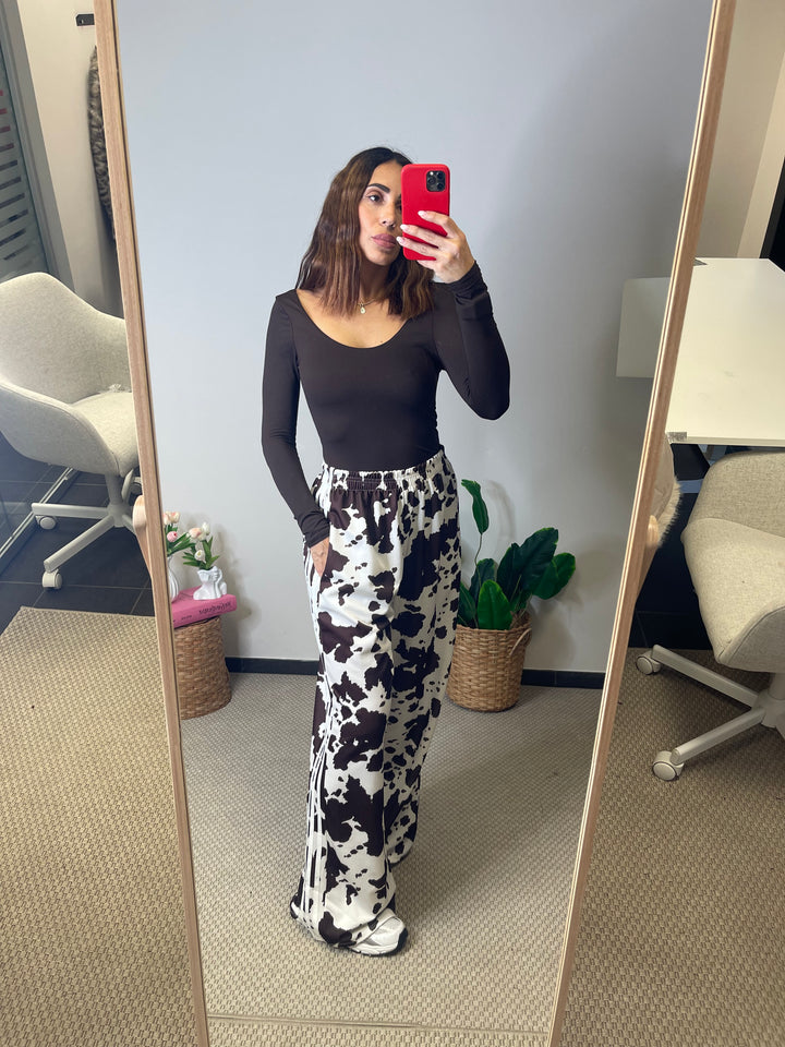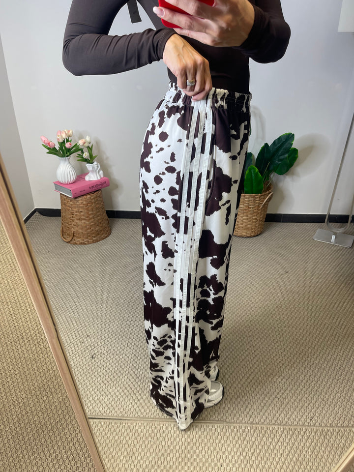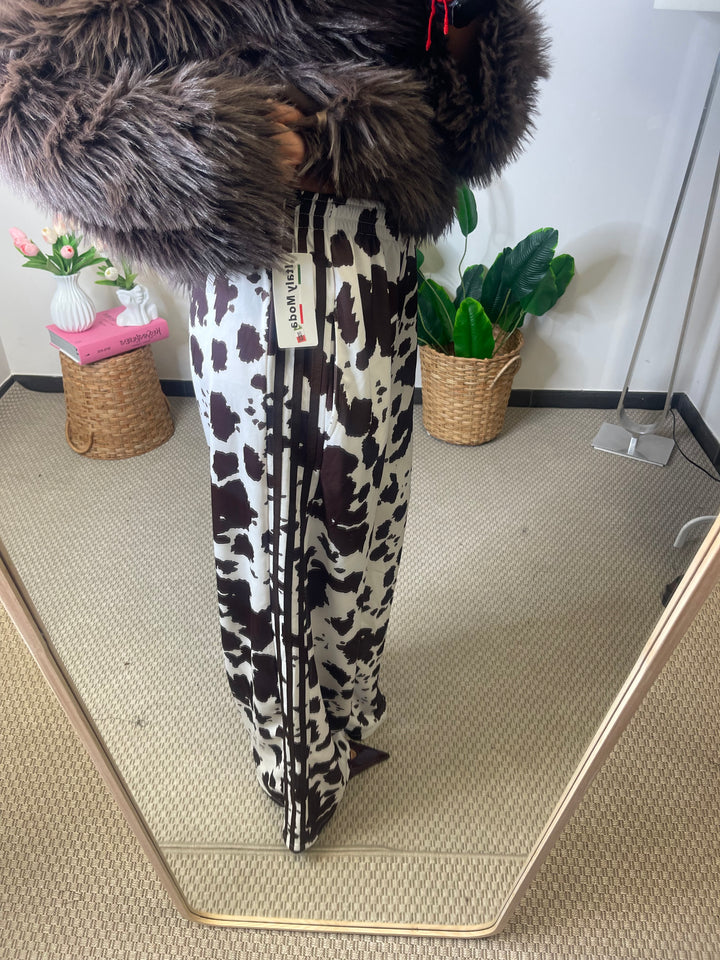 Panta tuta in super tendenza fantasia Cow con elastico in vita e tasche laterali.