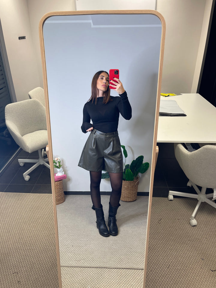 Pantaloncino in simil pelle, molto morbido va a taglie.