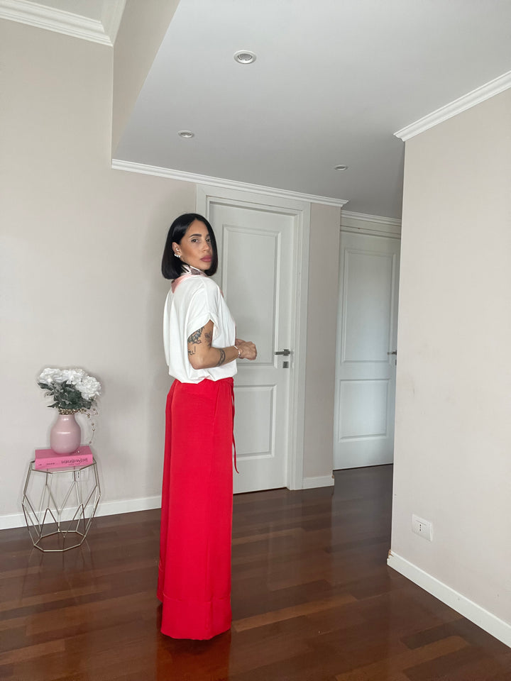 Pantalone Risvolto Rosso