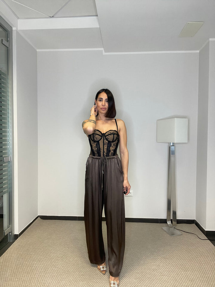 Adatta a tutte le fisicità, taglia unica. Elastico in vita e laccetto regolabile, veste fino ad una taglia 46.