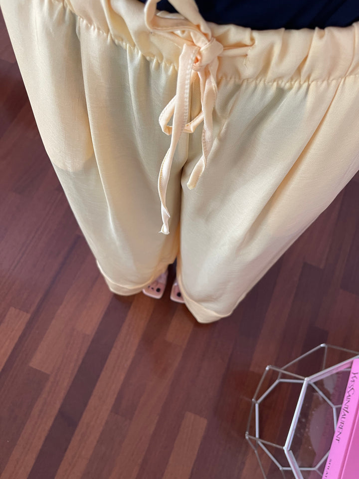 Pantalone super morbido con elastico in vita e laccetto che regola l’elastico. Risvolto alto cucito sul fondo.