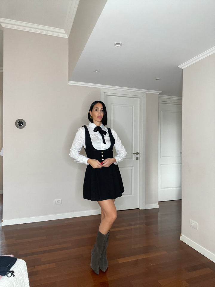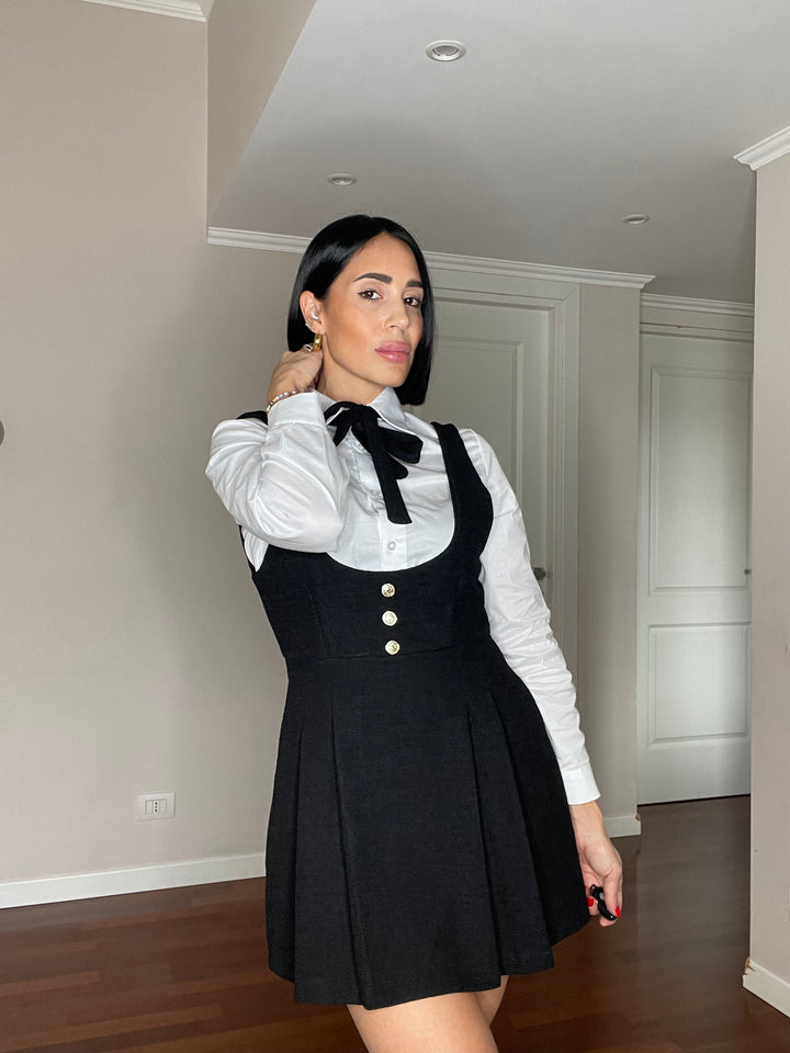 Abito con bottoncini dorati, zip sul retro in tweed.
