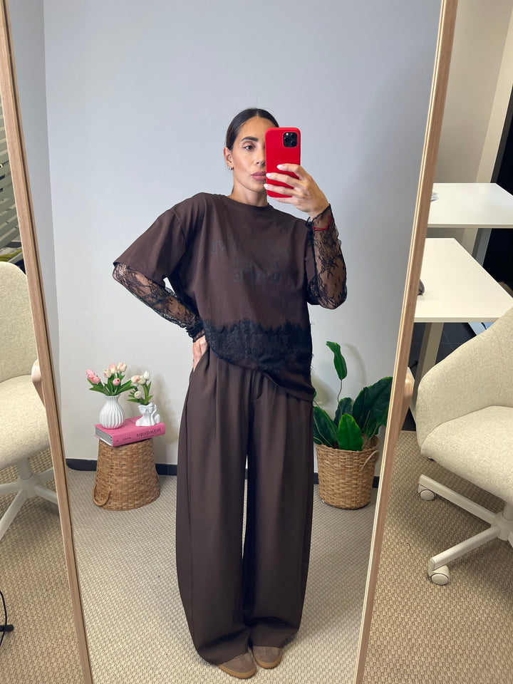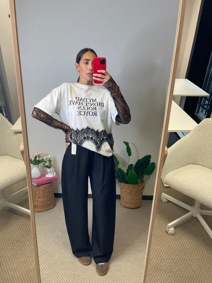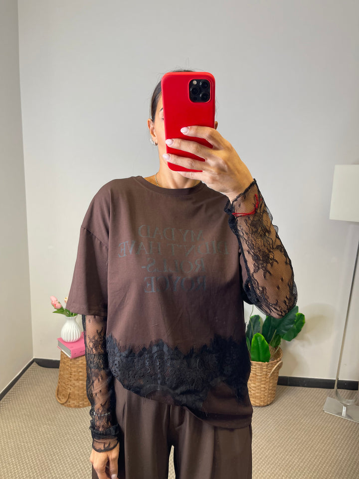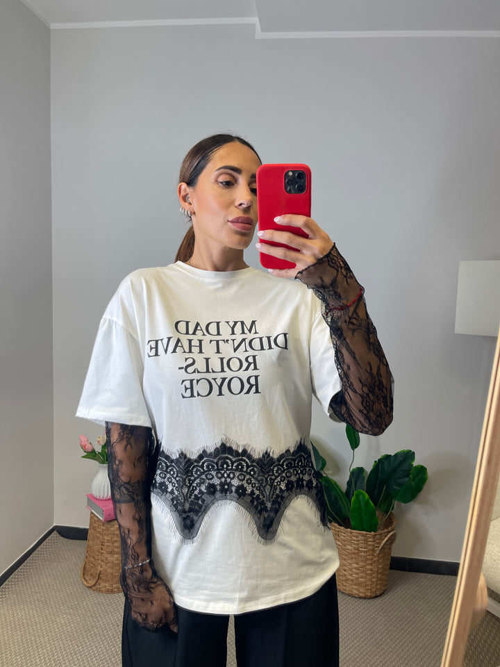 T-shirt stampa con manica in pizzo e dettaglio sul davanti.