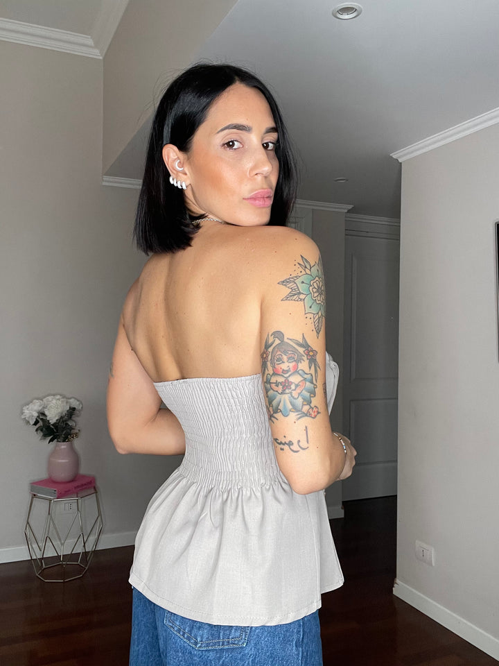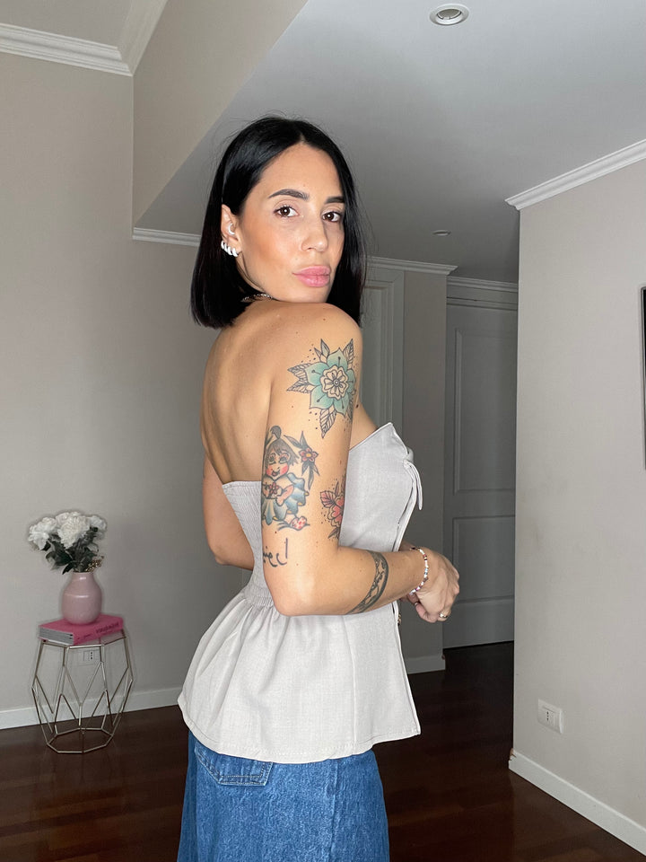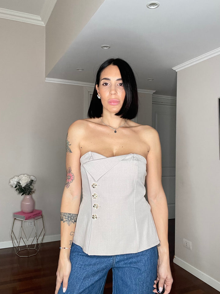 Top a corpetto asimmetrico con bottoni sul davanti.