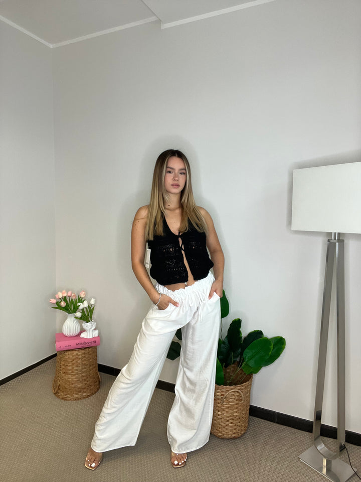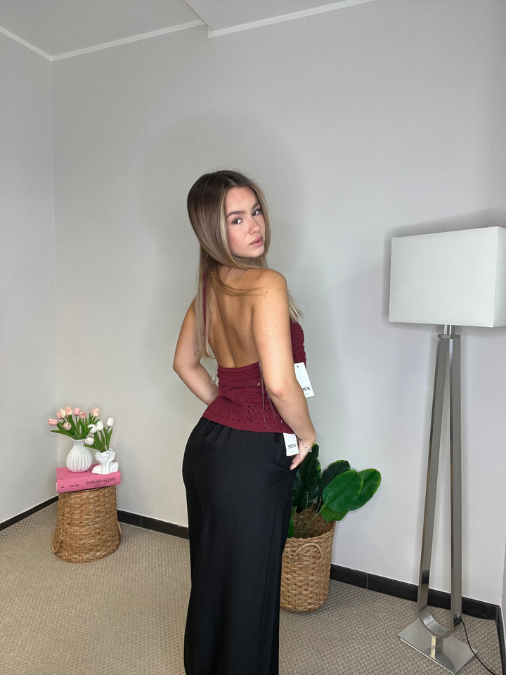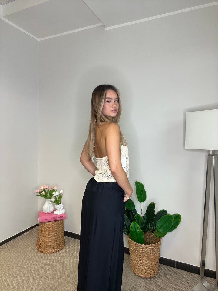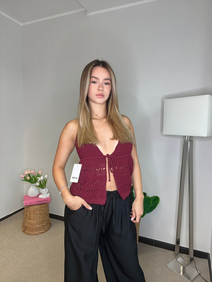Top uncinetto regolabile con laccetti sul davanti e sul collo.