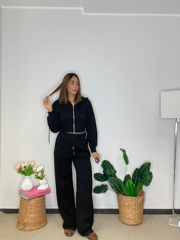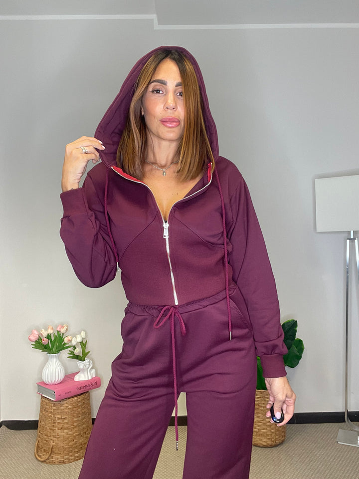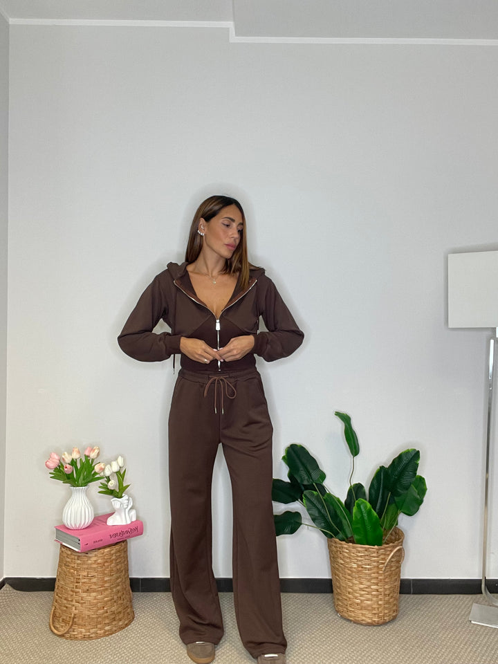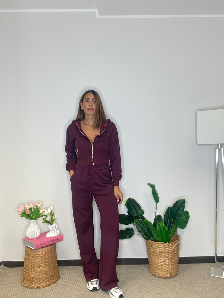 Felpa e pantalone garzati in cotone.