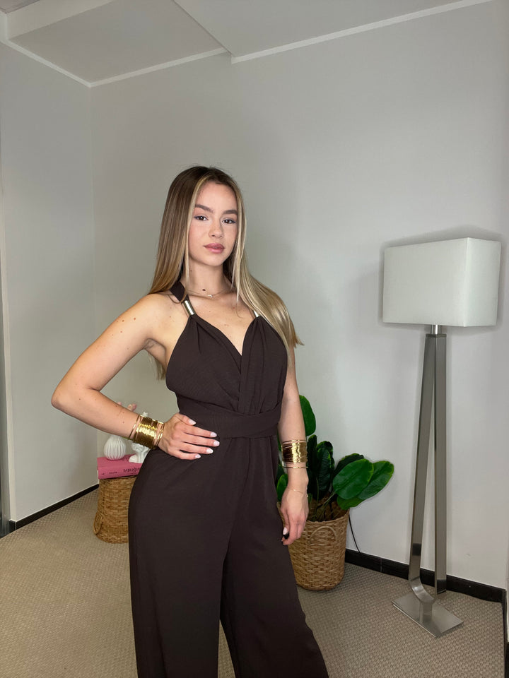Tuta a gamba larga elasticizzata in vita con nastri che si chiudono sul retro come preferite! Serve fantasia!